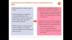 The TransCelerate consortium is an innovative and welcome initiative involving data-sharing of placebo data across multiple pharmaceutical companies, providing participating members with access to control arm data at the patient level: clearly a great help for designing studies in therapeutic areas where perhaps one’s own company’s experience is limited.