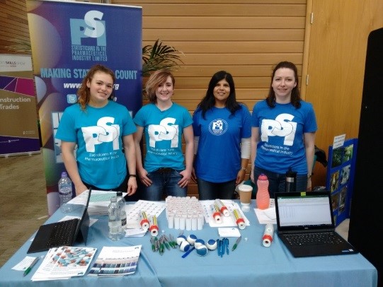 PSI volunteers ran a mini clinical trial game at their stand as part of the Bucks Skills Show. The event featured stands from over 100 organisations and attracted over 2,000 11-19 year olds across two days. Visitors to the stand played the role of asthma patients and were randomised to either placebo or a new drug, Breatheazy. Students had to blow into a Peak Flow Meter (adapted to give lower scores for placebo) and their data was analysed in an app. Students used various plots and statistics in the app to decide whether the new drug appeared effective or not.