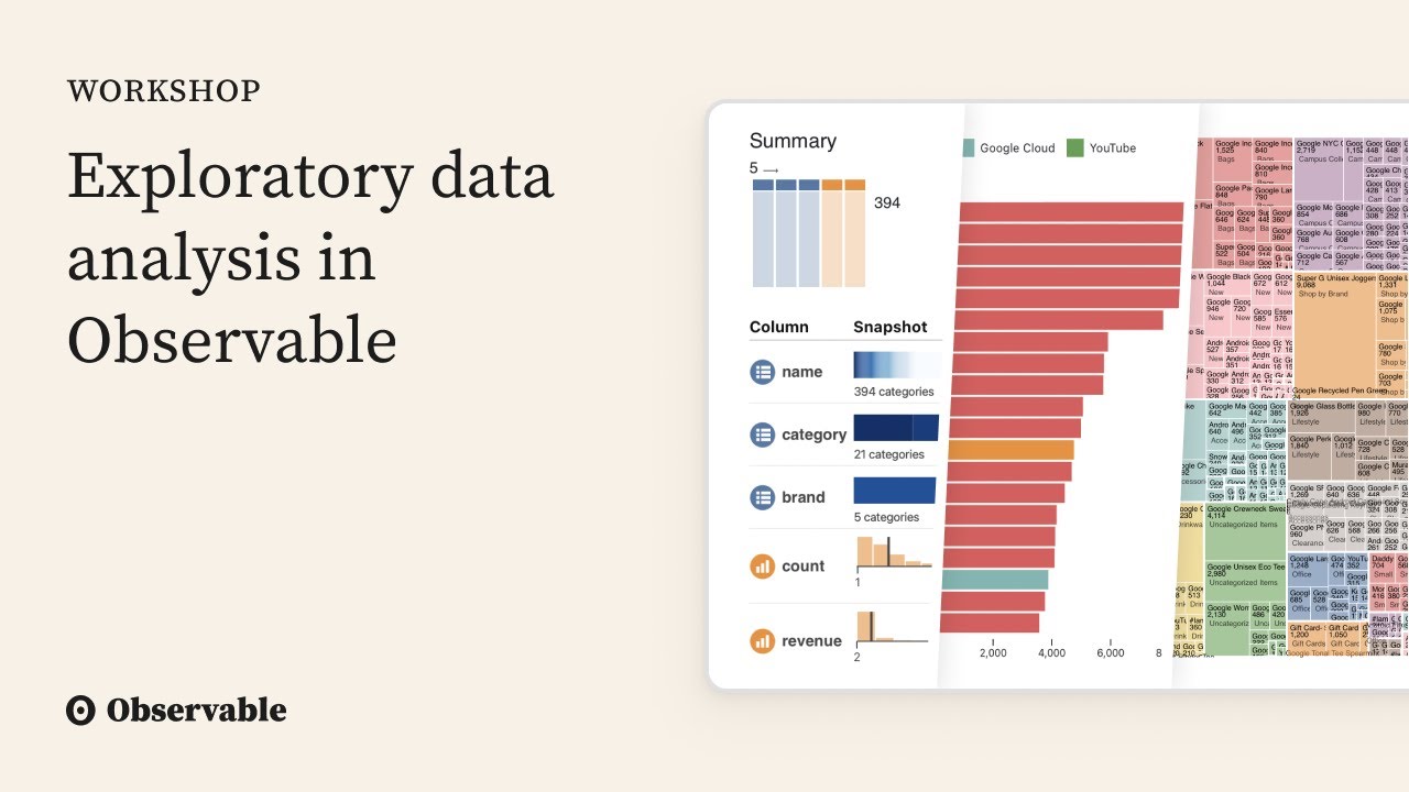 Want to quickly explore your data in the browser? Looking to create, collaborate and share interactive visualisations with others? In this session, you will learn how to load data from a SQL database, view and interact with data in JavaScript, create visualisations using a variety of tools including Observable Plot/D3, configure & customize your visualisations through Inputs and much more!