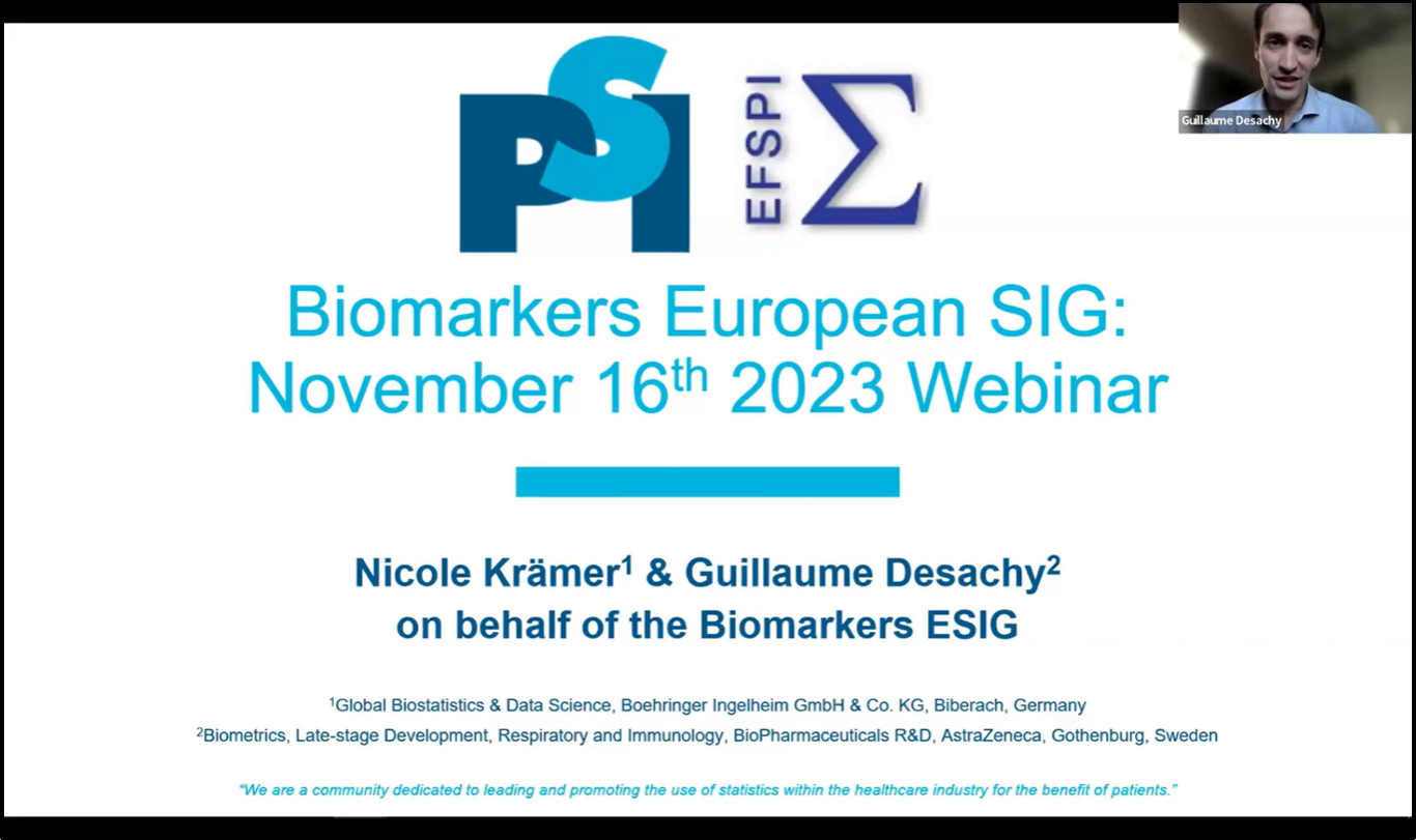 PSI Webinar of the European Biomarkers European Special Interest Group: A promising adaptive biomarker-based design strategy for early phase and machine learning as an enabler of precision medicine!