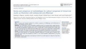 We compared methods for an indirect treatment comparison (ITC) of two marketed medicines in patients with diabetic macular edema. Post-stratification, inverse probability weighting based on simulated data, weight optimization, and regression model techniques were used to compare pooled individual patient-level data (IPD) from two phase III studies with summary-level data from two other phase III studies. The impact of adjusting for up to two important baseline characteristics was assessed. The weight optimisation method used is a new matching-adjusted indirect treatment comparison (MAIC) method we developed, which allows for more flexible and sophisticated matching compared with current MAIC approaches. We describe how this method works, how it can be applied (in both R and SAS), and how it compared with the other, more standard, methods.