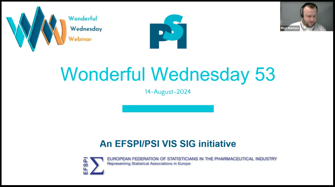 The development of a new patient reported outcome (PRO) needs to include the interpretation of the results. It should be possible to define a minimal clinically important difference and a meaningful between-group difference. Rhys Warham is presenting ways how visualisations can support that process. They are available on the Wonderful Wednesday blog.